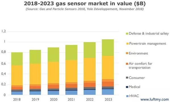 Another report indicates that since 2016, over 90% of the world's population lives in areas where air pollution levels exceed WHO limits. Consequently, these factors have created a global driver for the development and installation of gas and particulate matter sensors. According to Yole Développement, the primary gas and particulate matter sensor market has long been limited to industrial applications. However, today, declining air quality affects numerous sectors, including homes, offices, hotels, cars, and urban areas. Thus, air quality control has become a selling point for promoting hotels or restaurants. Historically, gas sensors in buildings were used to control air conditioning systems for energy saving and emission reduction.